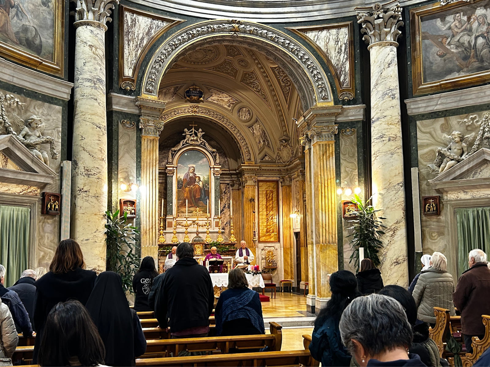 That meant a slightly hurried jaunt through St. Peter’s, so we could make it on time for Mass to start. My parents still were bowled over, as anyone would be, at the pope’s own basilica — one of the most magnificent in the Christian world — but it was the little parish down the street where the Lord spoke to my mom yesterday, and I watched her respond, with tears in her eyes.