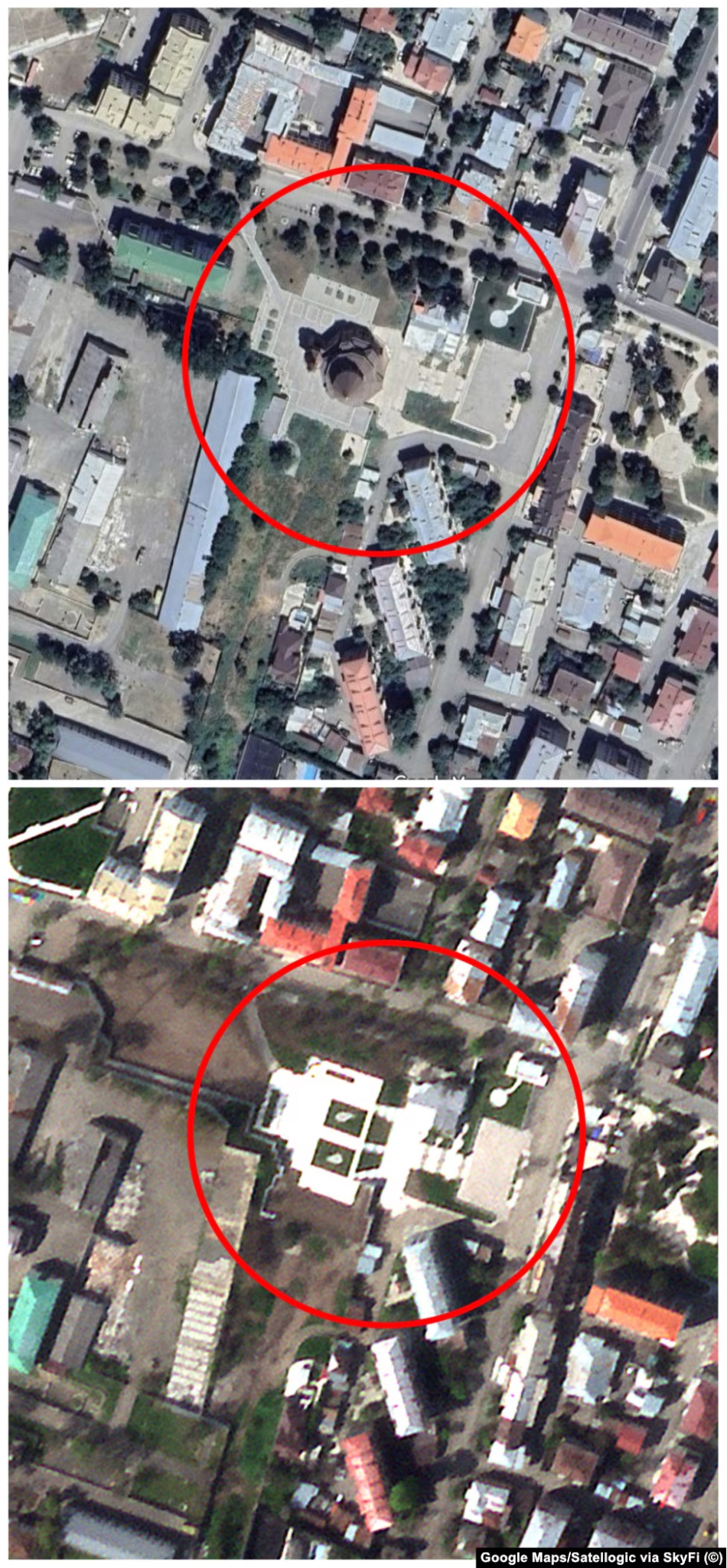 Armenian news outlet Hetq claimed to have verified the church’s demolition with satellite images that showed the white paving stones around the cathedral, but not the church itself, which prompted several human rights organizations and media publications to verify the reports.