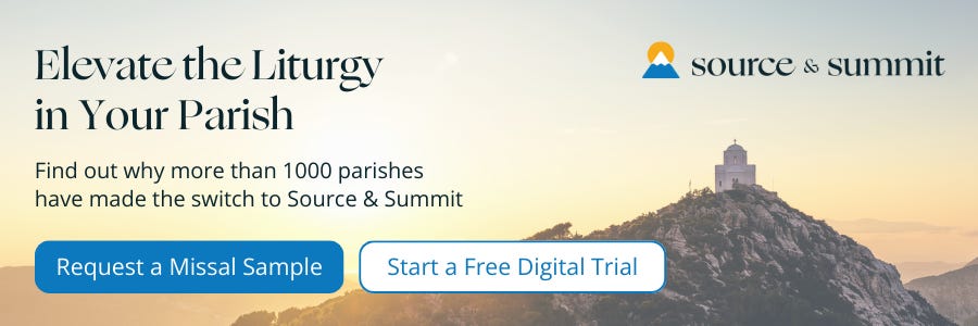 Source & Summit is the next generation of liturgy and music publishing, providing beautiful printed worship resources and user-friendly digital tools to help you equip your musicians and deepen liturgical participation. Get started with our premium software for free, or request a sample missal to explore how Source & Summit can benefit your parish.