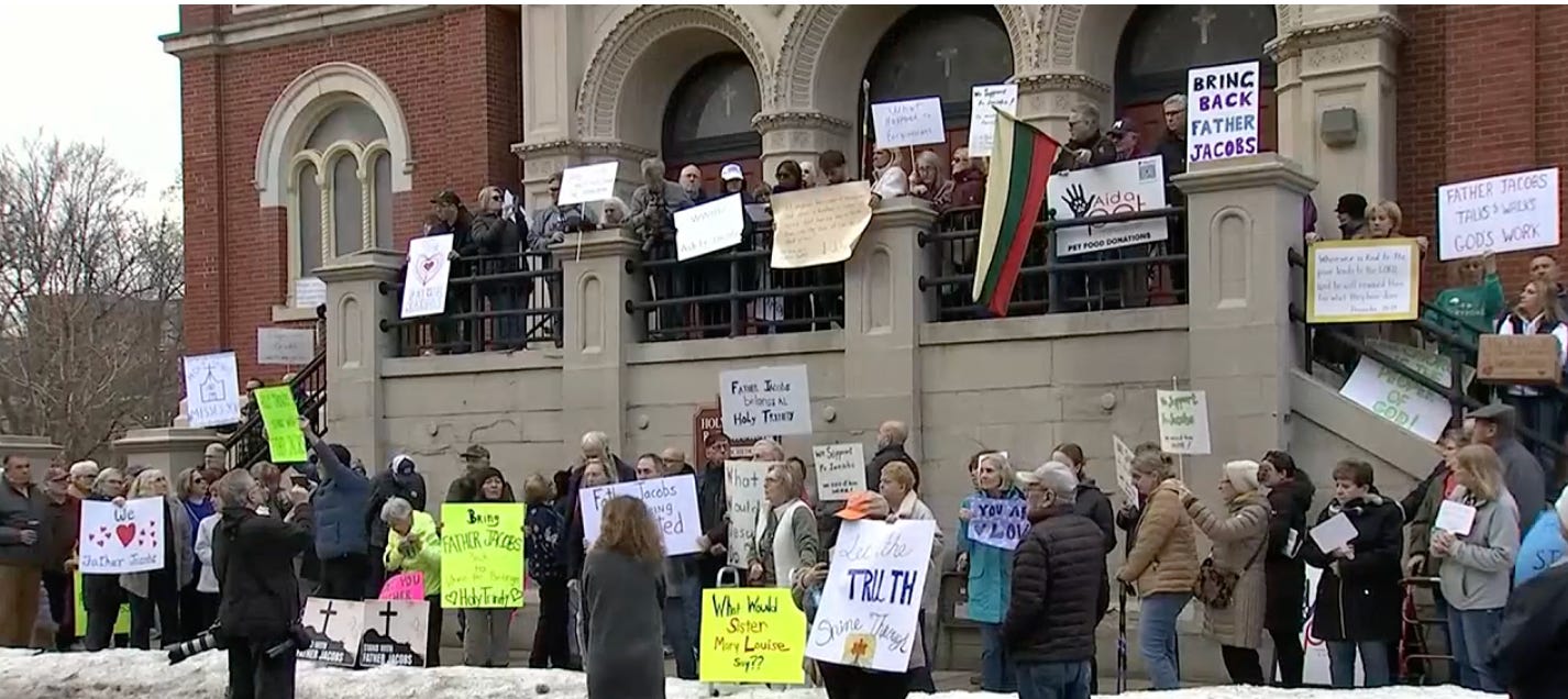 While parishioners defend him, an archdiocesan spokesman says Fr. Charles Jacobs is not “a modern-day Robin Hood.”