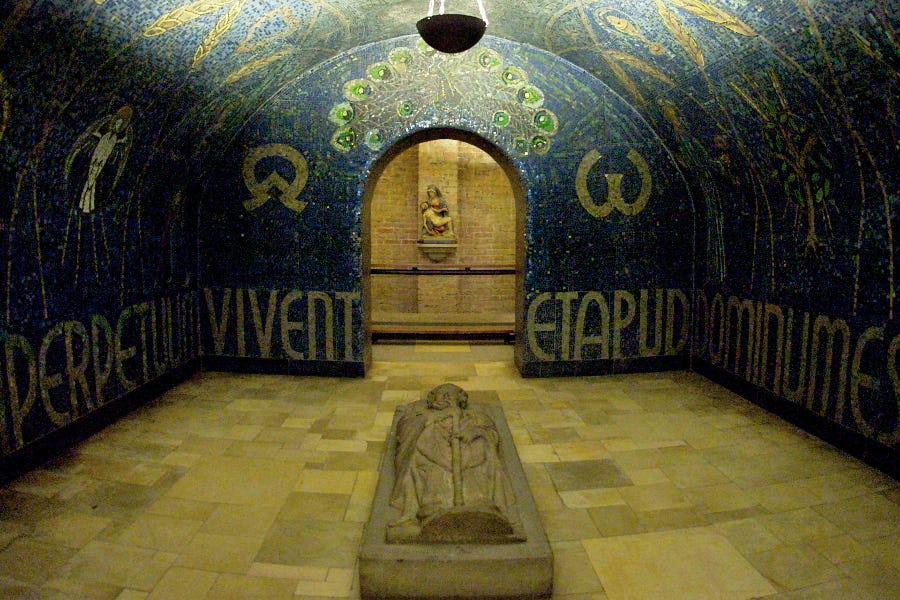 The noticeboard was placed in the refurbished crypt of Paderborn Cathedral in the German state of North Rhine-Westphalia by the tombs of C…