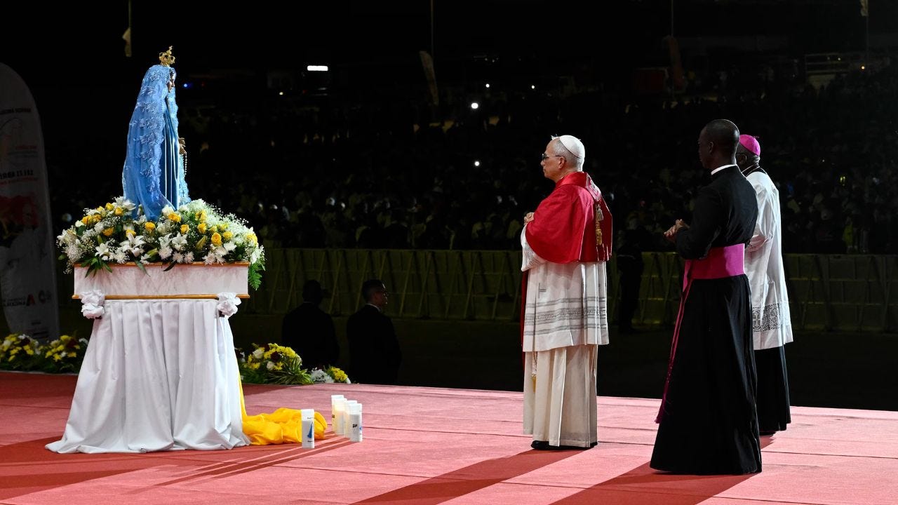 “We must always be vigilant regarding those forms of traditional religiosity that certainly belong to the roots of your culture, but at the same time risk confusing and mixing magical and superstitious elements that do not aid your spiritual journey,” he said during Mass in Kimbala. “Remain faithful to what the Church teaches, trust your pastors, and keep your gaze fixed on Jesus, who reveals himself in the word and in the Eucharist.”