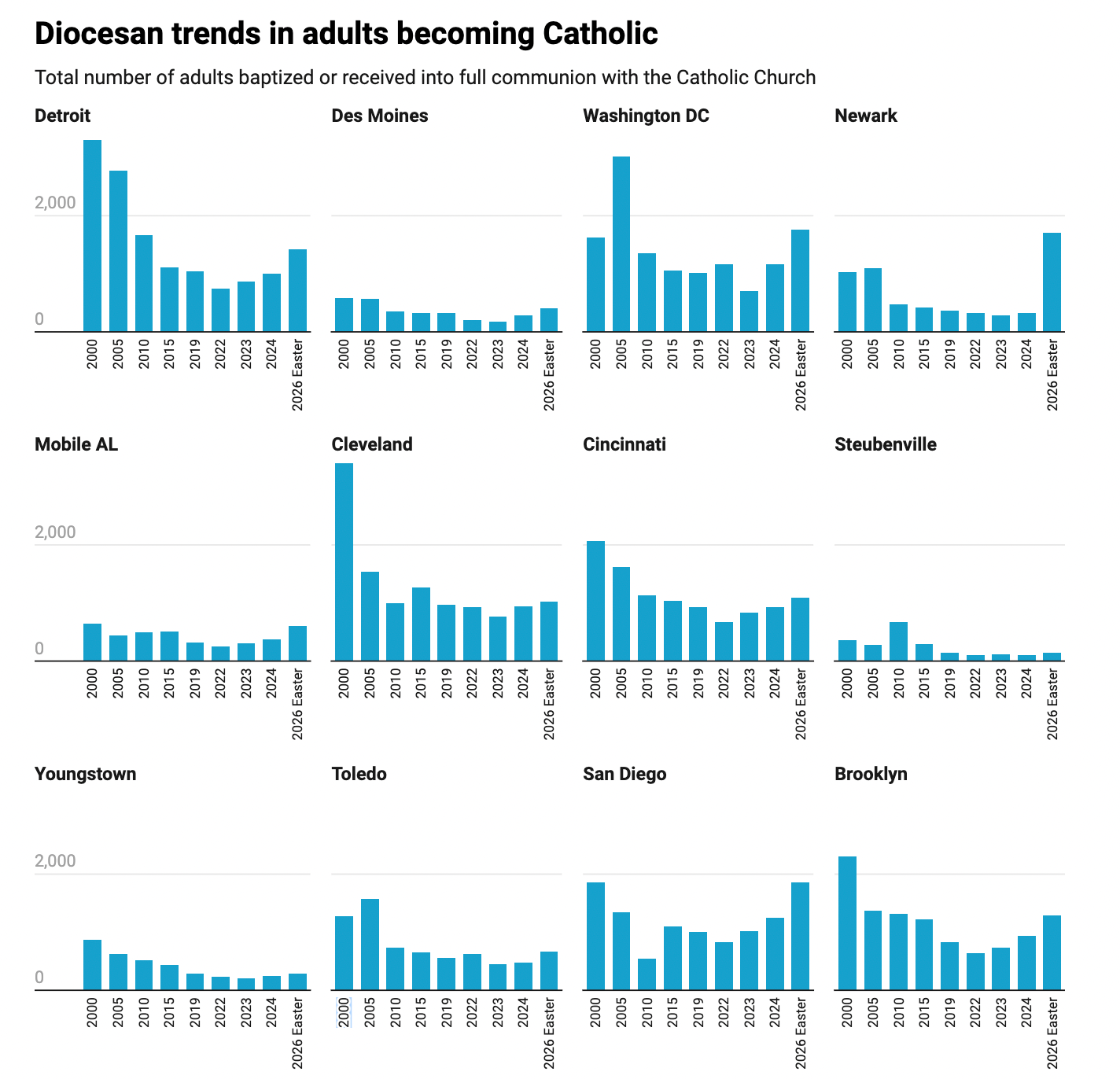 The real question is how high the rebound might bounce, and whether the Church can expect numbers of conversions to continue growing year-over-year. Further, it’s worth asking how the number of adults becoming Catholic will compare to the massively declining number of annual infant baptisms in the U.S.