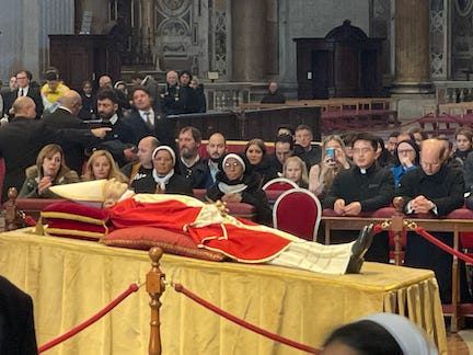 Why did people stand in line for so long, for just a few seconds near the body of Benedict XVI?