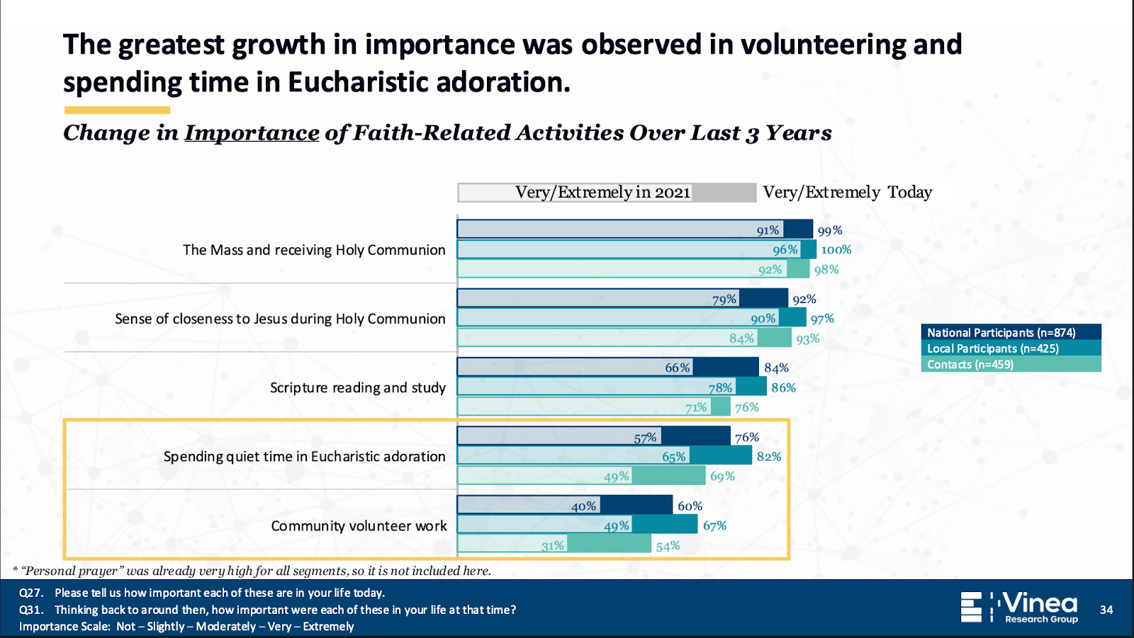 Researchers separated the group into two categories — surveying in one group 414 priests, deacons and parish point people formally involved with the planning of revival events, and in another group, 2,058 lay Catholics not formally involved with organizing revival events.
