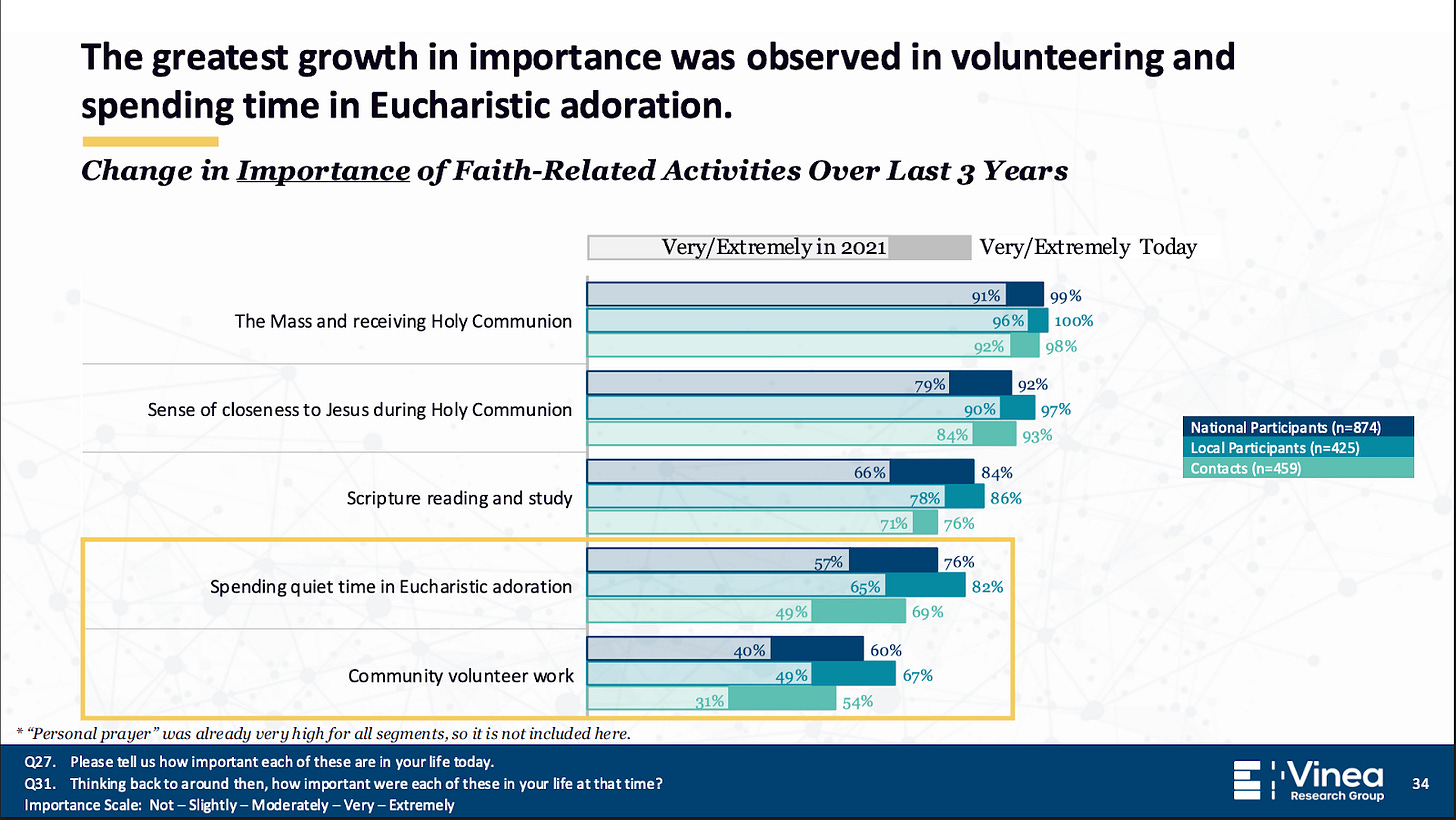 The impact survey showed that people who attended local Eucharistic Revival events reported the same increase in engagement as those who attended national events.