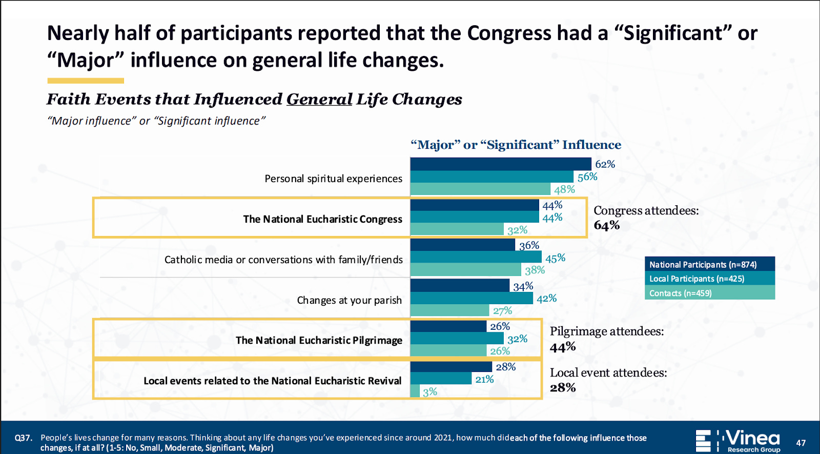 That method clearly has worked and we want to continue that and will allow the places of growth in the study to continue to be reflections for us as we try to allow this Eucharistic Congress movement to be part of the missionary conversion of our Church in the United States.