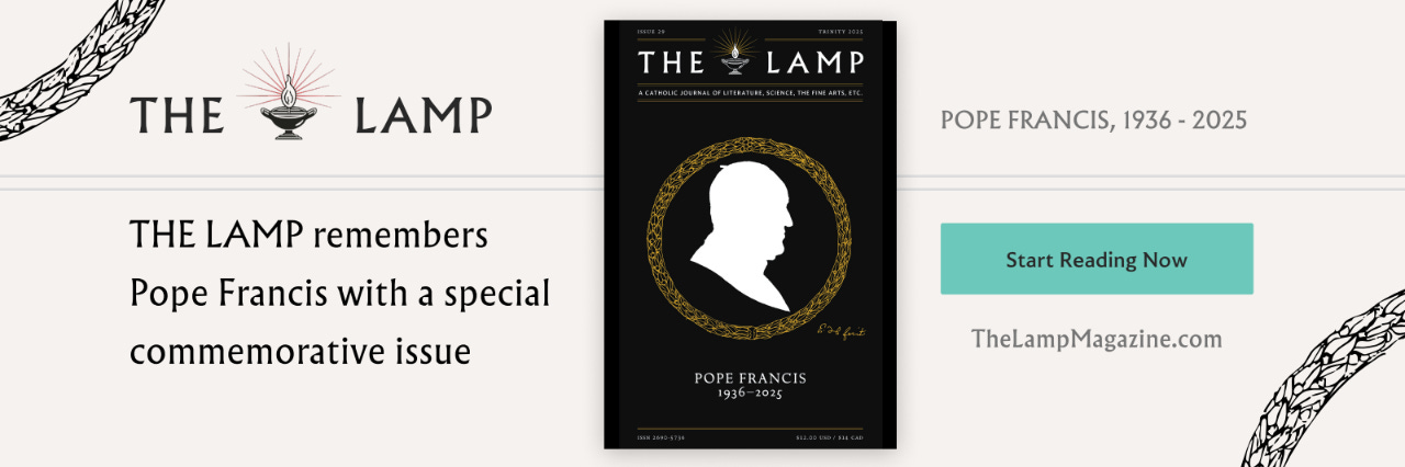 The Lamp magazine presents a symposium on Pope Francis’s life and legacy in our latest issue. Featuring contributions by Christopher Beha, Leah Libresco Sargeant, Matthew Walther, Michael Hanby, Massimo Faggioli, Zena Hitz, Diarmaid MacCulloch, Thomas Pink, Edward Feser, and many more. Start reading now!