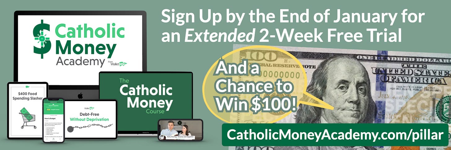 Ready to get out of debt, save for emergencies, morally invest, and give generously? Claim your 2-week extended free trial at CatholicMoneyAcademy.com/pillar and learn how to practically manage money with virtue. Sign up by January 31 for a chance to win $100.
