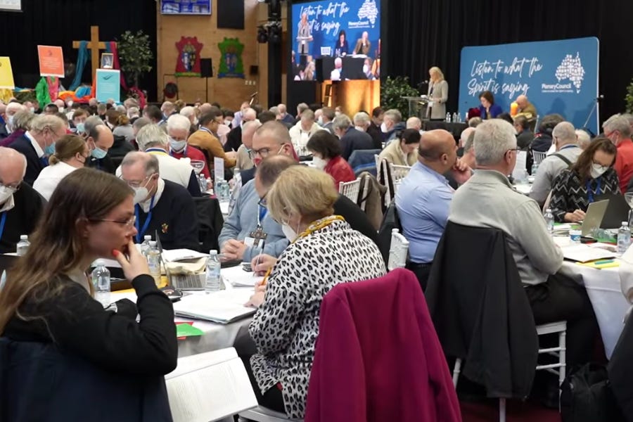 A session of Australia’s Plenary Council in July 2022. Screenshot from @plenarycouncil1161 YouTube channel.