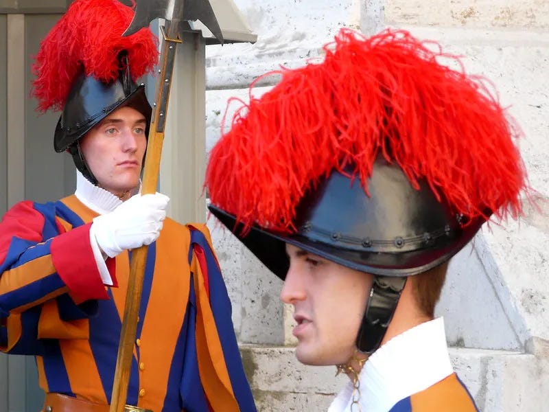 The Pontifical Swiss Guard was established in 1505, after Swiss Bishop Matthäus Schiner suggested that Pope Julius II hire Swiss mercenaries – considered the most effective in Europe – to protect Rome, and the pope took him up on his suggestion, hiring 150 Swiss mercenaries to serve him.