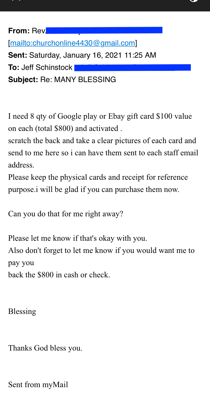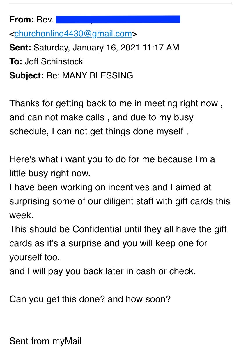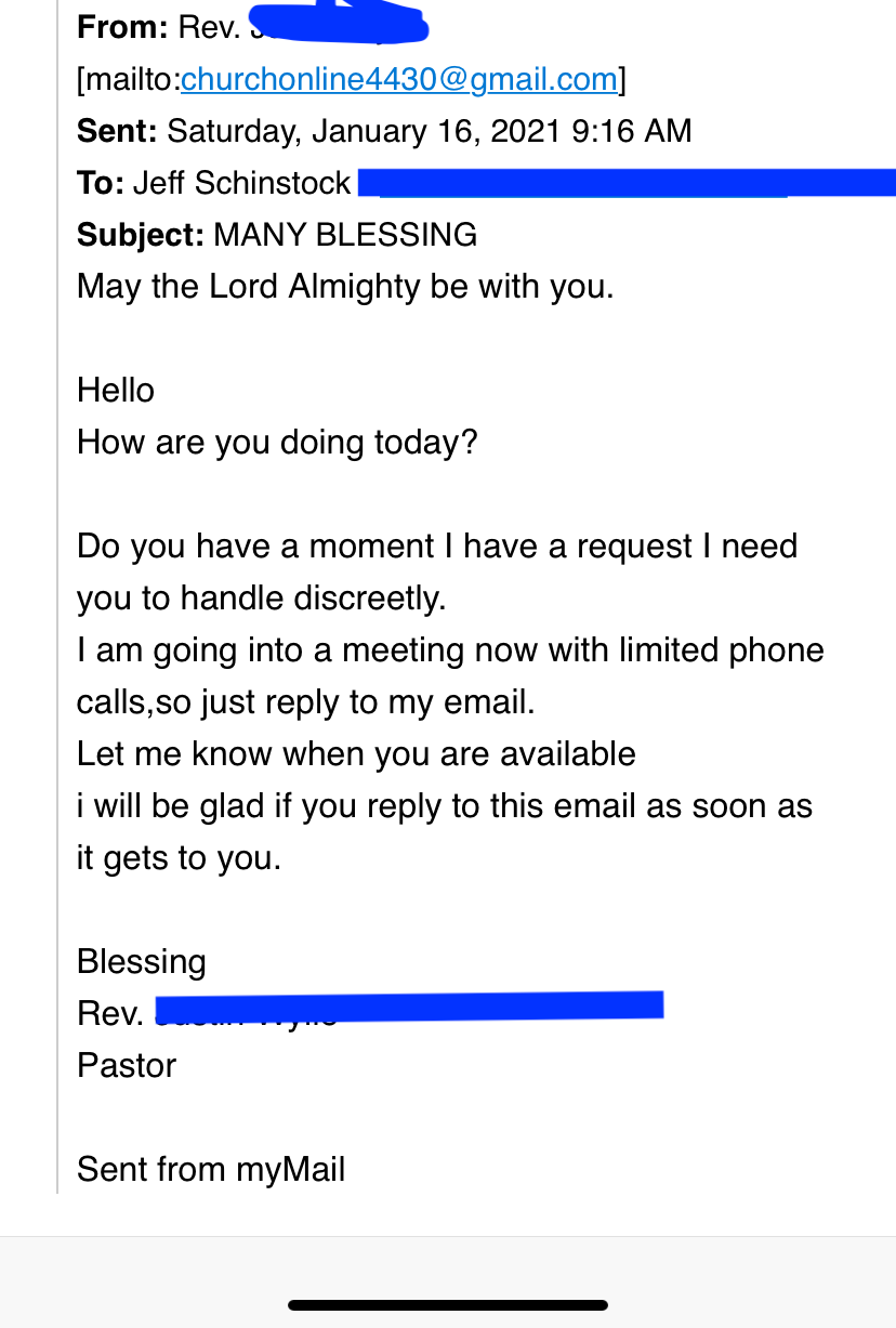 The email claimed to come from the pastor of a nearby parish. But Jeff suspected otherwise. He didn’t recognize the ema…