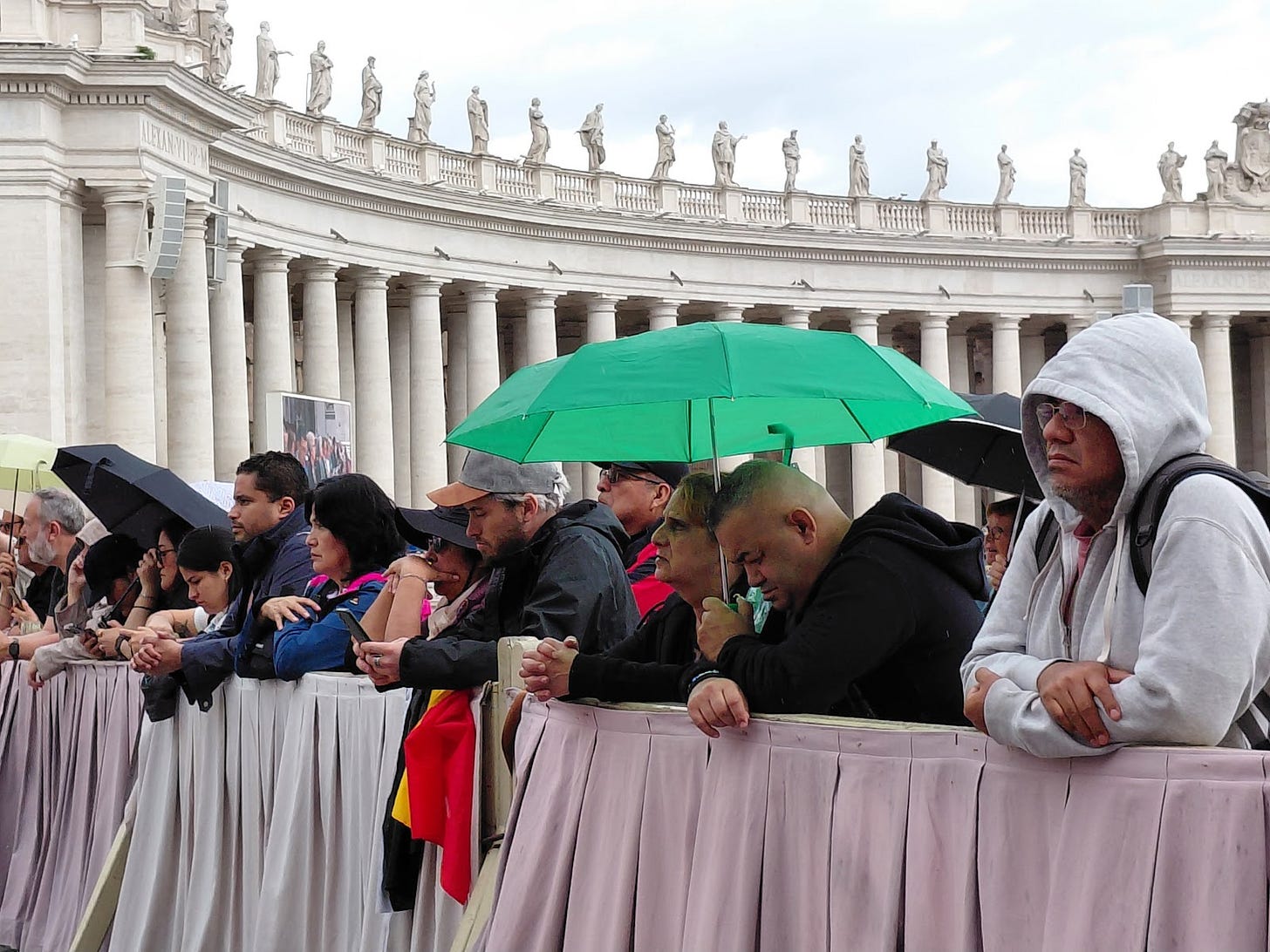 Joseph Daniel, originally from Kentucky, stood with his wife, Johanna, and hundreds of other pilgrims in the middle of St. Peter’s Square throughout the Mass for the election of the Roman Pontiff on Wednesday morning.