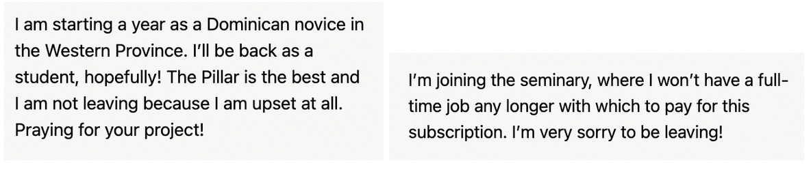 And the truth is, quite a few of the people who make the decision to stop being paid subscribers tell us similar stories. Like these two guys, for example: