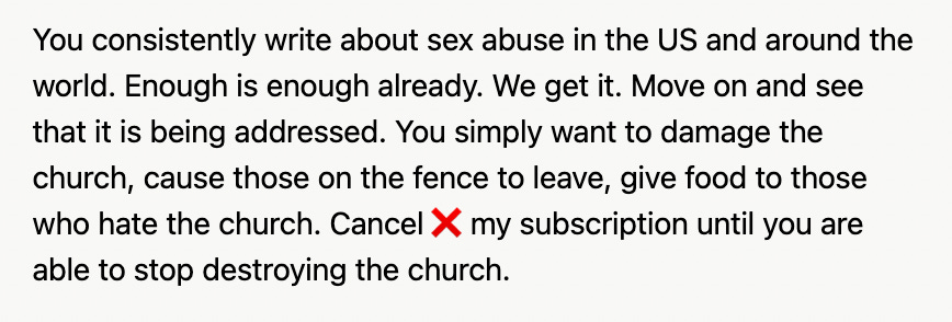 Some people actually don’t want us to write about abuse, misconduct, scandal, or corruption at all, because they think giving voice to victims and demanding justice is just an attack on the Church.