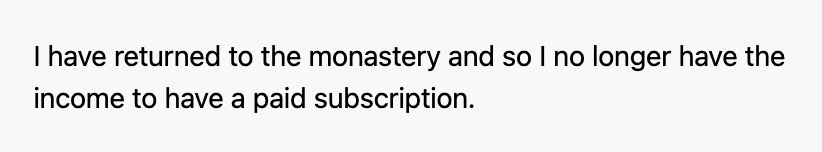 If people are going to leave us as paying subscribers, doing it to answer a vocation from the Lord is about the best possible reason we could hope for, and they are — all of them — in our prayers.